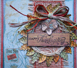 Happy Thanksgiving! This holiday season, try adding burlap to your next project to create a natural look full of texture and dimension, that's perfect for Fall or Winter. I made a banner with it, on a card featuring an assortment of Autumn Rubber Stamps from Red Rubber Designs.